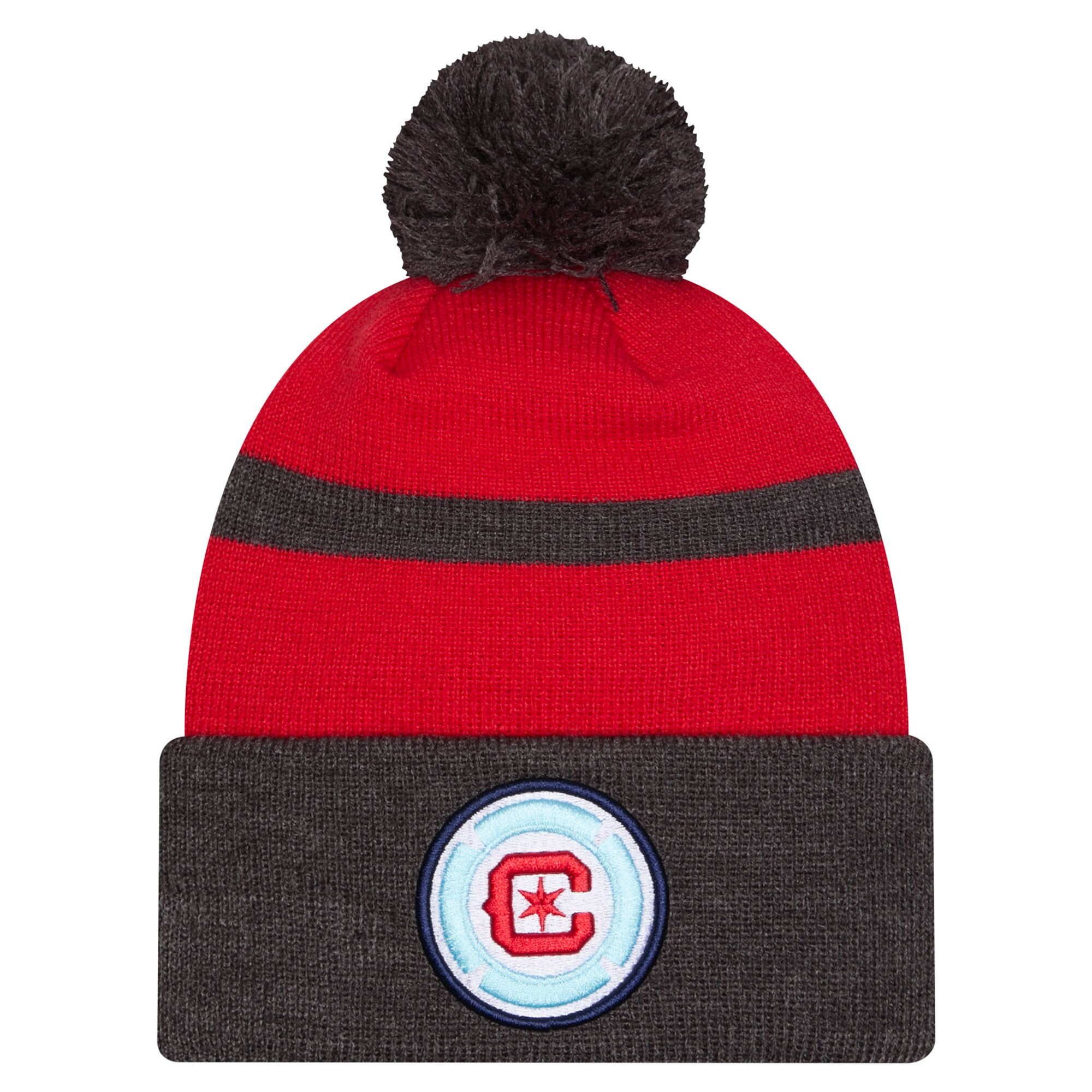 Men’s Chicago Fire New Era Black 2025 Kickoff Cuffed Knit Hat with Pom