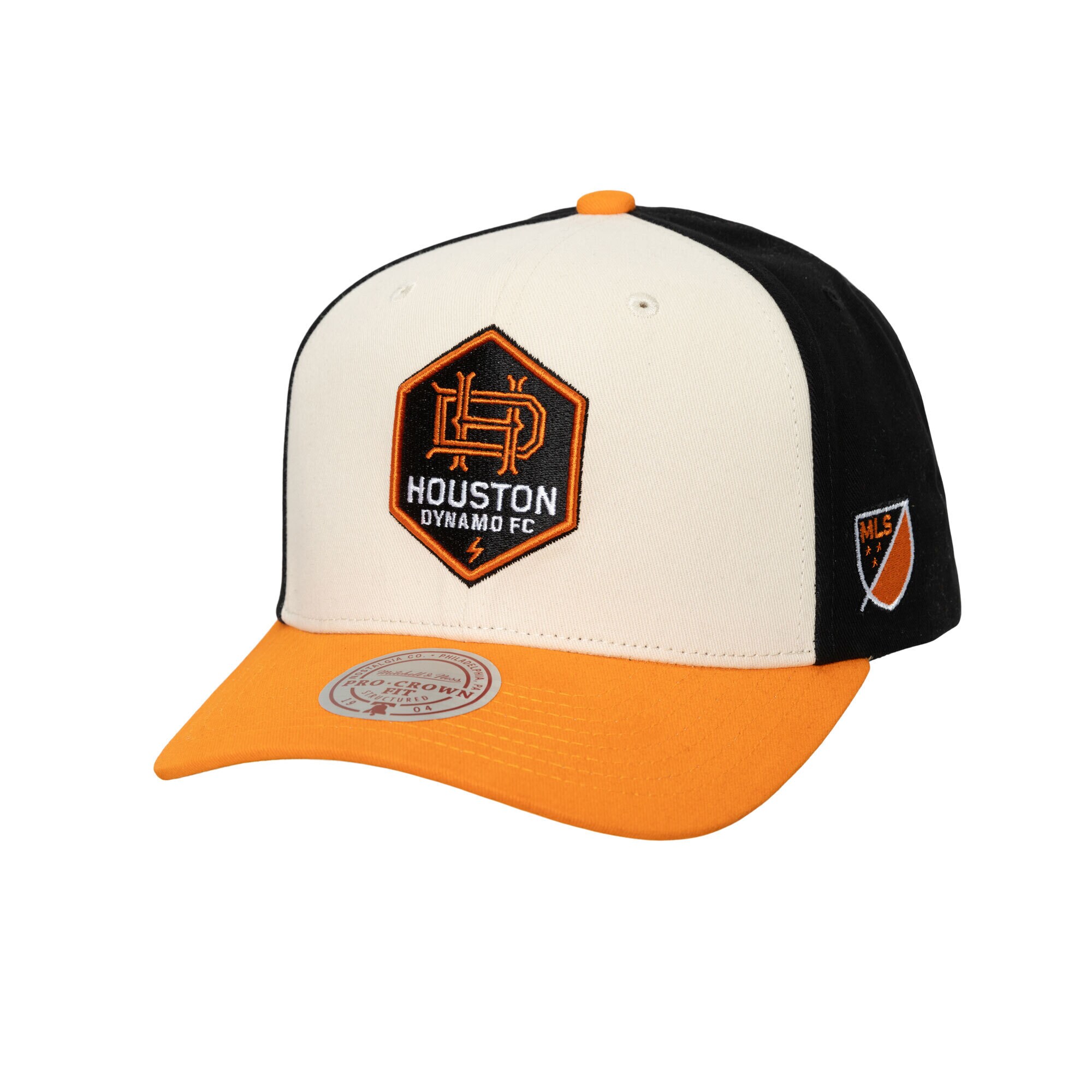Men’s Houston Dynamo FC Mitchell & Ness Cream Brushed Off Pro Crown Snapback Hat