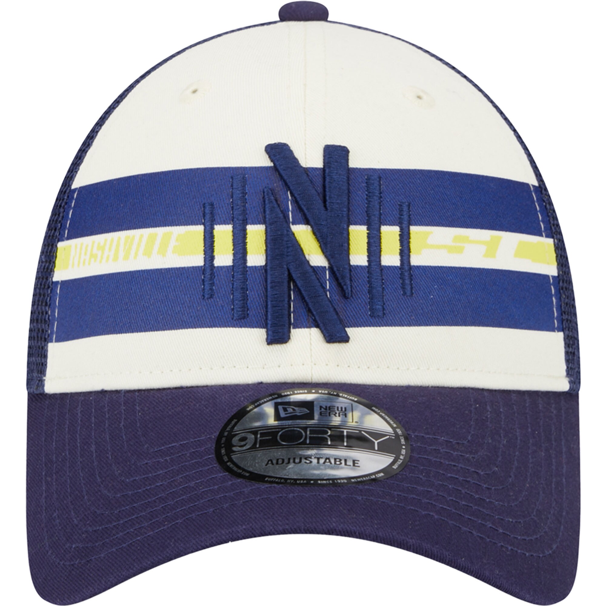Men’s Nashville SC New Era White/Navy Team Stripes 9FORTY Trucker Snapback Hat