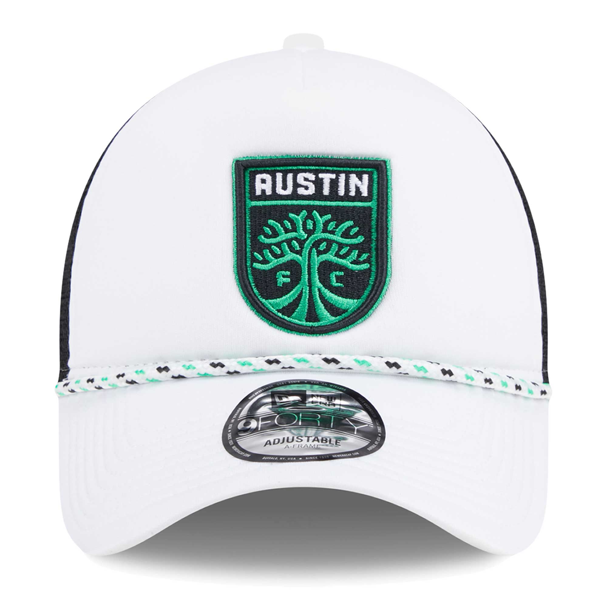 Men’s Austin FC New Era White/Black Court Sport Foam A-Frame 9FORTY Adjustable Trucker Hat