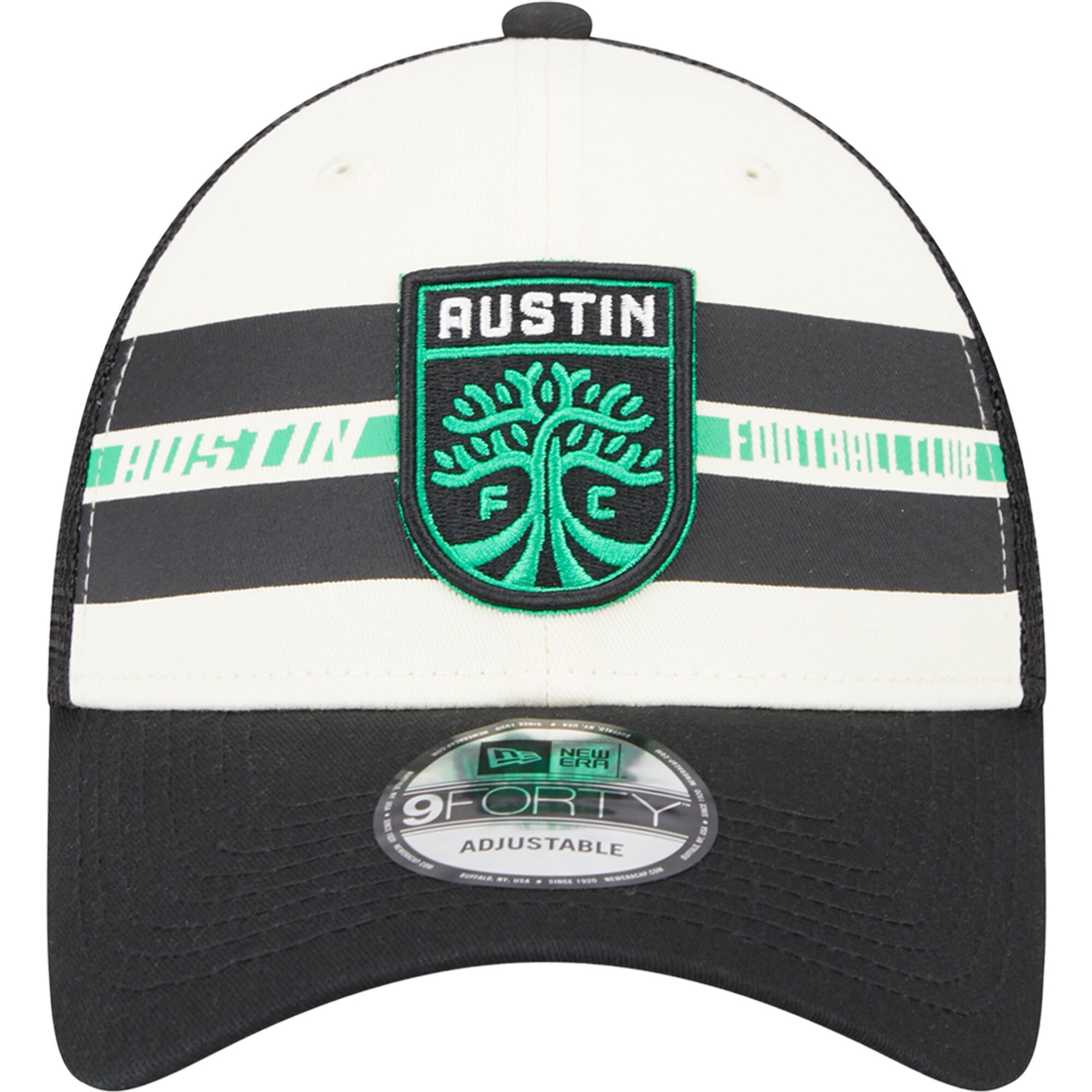 Men’s Austin FC New Era White/Black Team Stripes 9FORTY Trucker Snapback Hat