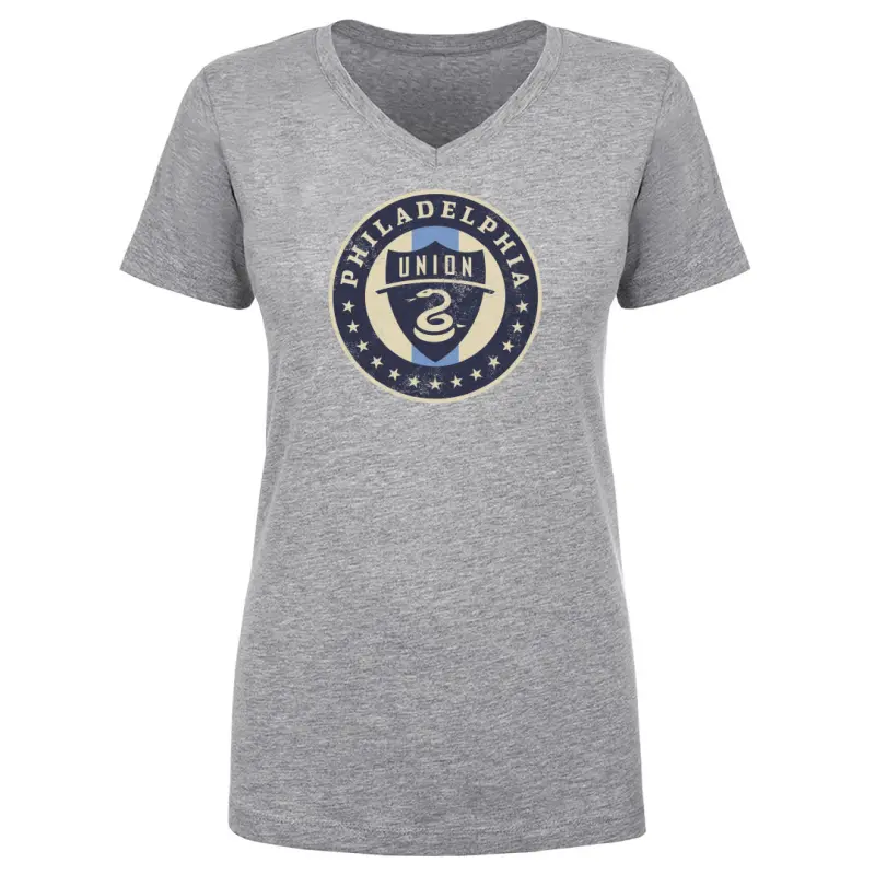 Philadelphia Union Vintage Primary Logo Gray WHT – Women’s V-Neck T-Shirt