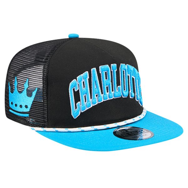 Men’s Charlotte FC New Era Black Throwback Golfer Snapback Hat