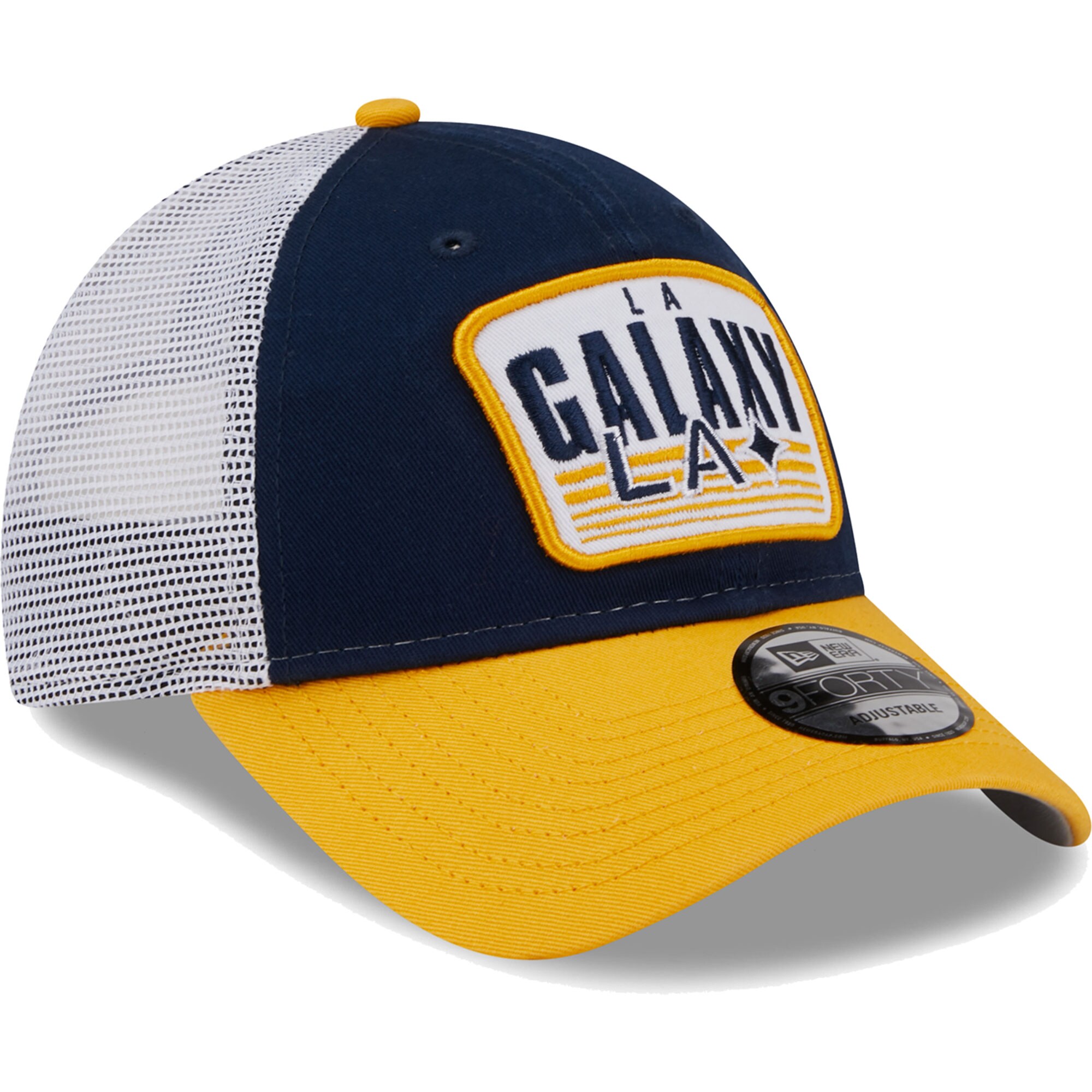 Men’s LA Galaxy New Era Navy/Gold Patch 9FORTY Trucker Snapback Hat