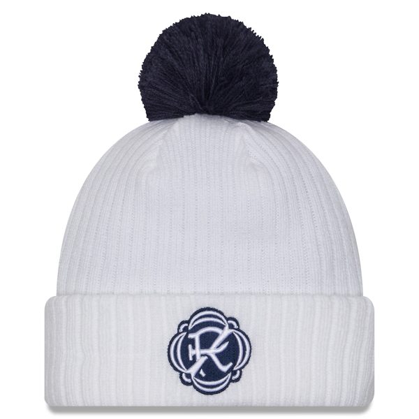 Men’s New England Revolution New Era White 2025 Jersey Hook Cuffed Knit Hat with Pom