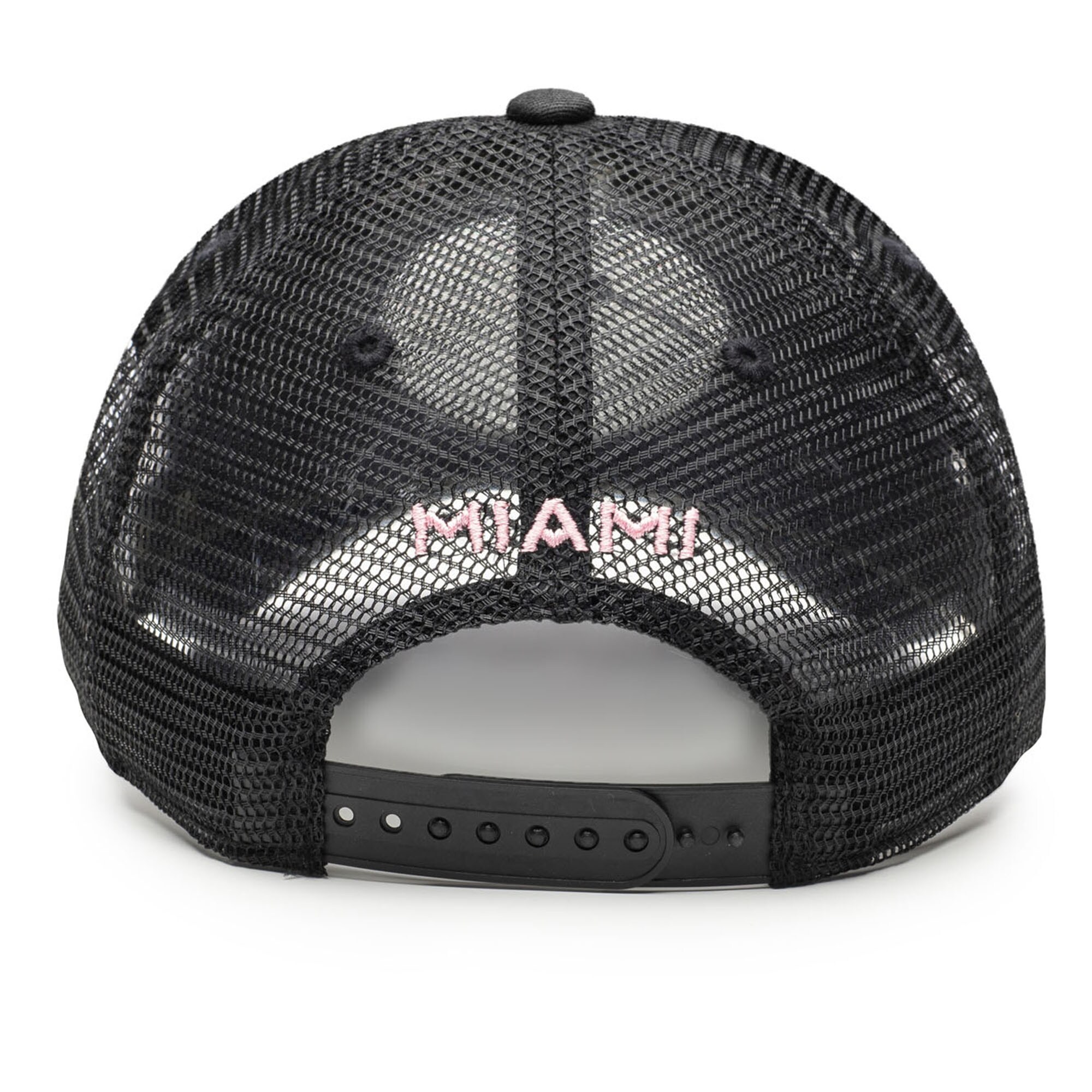 • Complete your Inter Miami CF game day look with this Atmosphere Adjustable Trucker Hat. This stylish trucker hat features a unique blend of materials, including a heat-sealed applique on the front and an embroidered patch on the right panel. Four mesh mid and rear panels provide breathability, ensuring you stay cool and comfortable whether you’re cheering from the stands or enjoying a sunny day out.